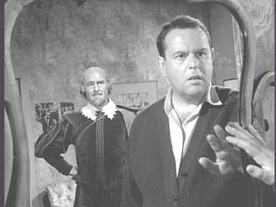 One of history’ greatest writer, for instance -- William Shakespeare – has sometimes been a guest on genre programs.  In “The Bard,” an episode of Rod Serling’s Twilight Zone (1959-1964), for example, he is summoned using black magic by another writer, Julius Moomer (Jack Weston), in hopes that he can help the would-be author create a successful screenplay.