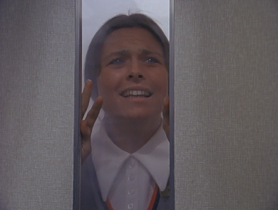 that as the flight attendant screams for help, her visual space in the frame is