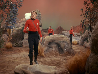One of the things I like best about this episode is seeing McCoy act like a Starfleet officer. He tries the "friendly country doctor" routine first, and when that doesn't work, then he questions Kirk by the book and makes it clear that he's doing what he believes his duty to Starfleet requires him to do. McCoy gets away with murder during most of the series and is rarely forced to seriously act like a Starfleet officer. It's nice to know that when push comes to shove, he can and will.