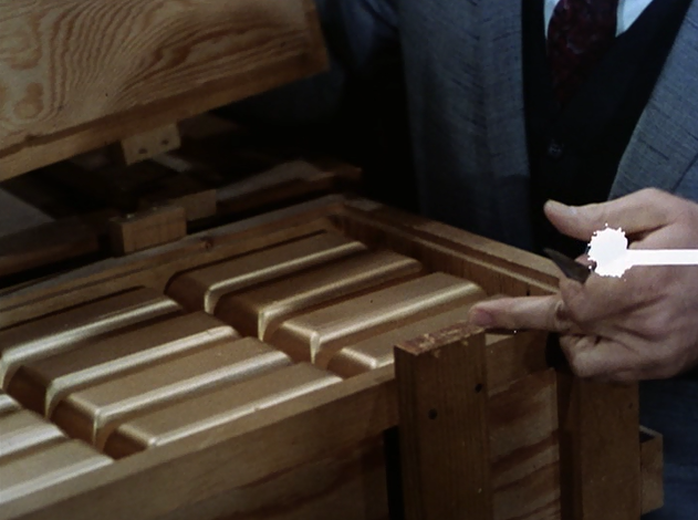 In "Encore," William Shatner guest stars as a gangster named Kroll who, nearly forty years earlier, committed the murder of a rival mobster, Danny Ryan. Kroll hid the body, and weapon used to kill him, but nobody knows where. Accordingly, to this day, no one has been able to pin the murder on the powerful Kroll, or his partner, Stevens. Worse, to maintain their "innocence," Kroll and Stevens have been murdering all the witnesses to the crimes, arranging accidents for them. Their latest victim is a little old lady in a hospital. Kroll and Stevens blow up her room in the hospital to keep her from talking.