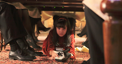 For instance, late in the film, the young heroine, Sally (Bailee Madison), is trapped in a dark library with the rampaging monsters. She battles them valiantly, while outside the library, the dinner guests of her father, Alex (Guy Pearce) try to break in and rescue her.