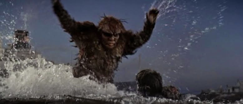 appearance, but also in terms of his abilities and proclivities. When the airborne Hedorah strafes his human
